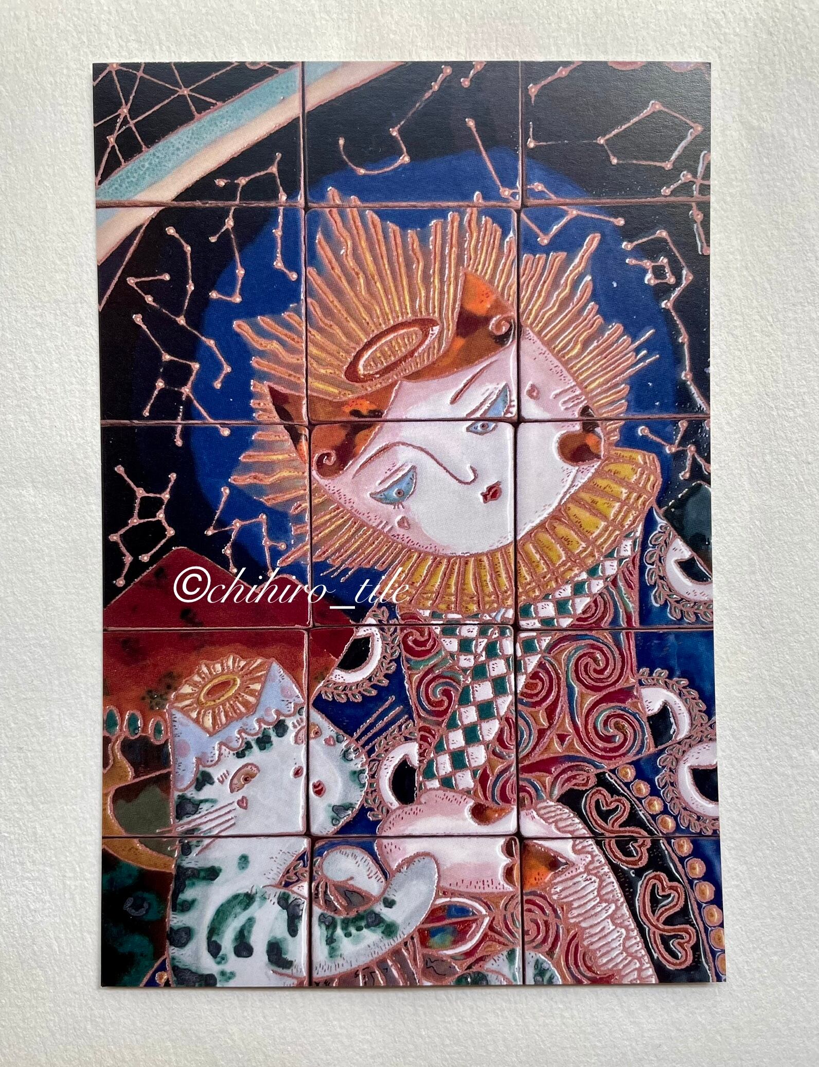 作品は、「タイルホコラ”CAT BLESS YOU”」を作成した時の、祠(ホコラ)の内面に飾ったタイル 画です。