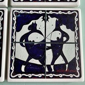 ※最後の6枚目が、チヒロの工房床に嵌められている「双子座」タイル。左に、このコースターを置いて撮影してみました。